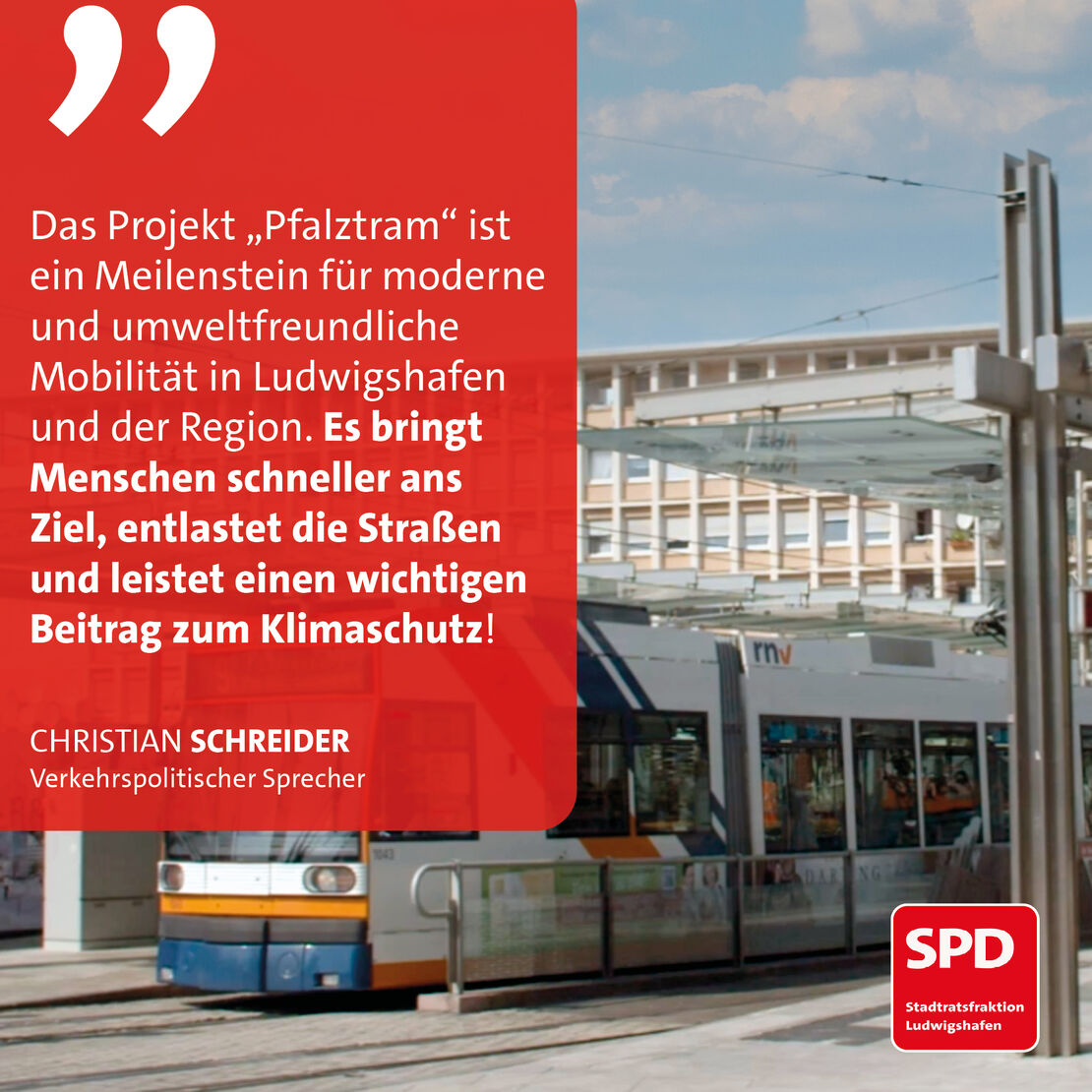 „Die Pfalztram ist ein Gewinn für die ganze Region. Jetzt kommt es darauf an, die Chance zu nutzen und das Projekt in den kommenden Jahren konsequent voranzutreiben. Wichtig ist uns dabei, von Beginn an eine breite Bürgerbeteiligung.“