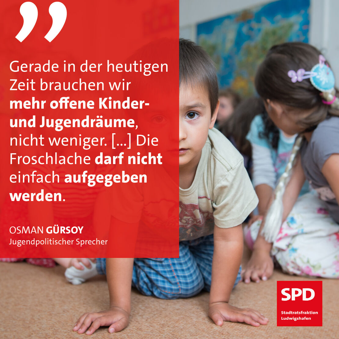 Als „fatales Signal“ kritisiert die SPD-Stadtratsfraktion die drohende Schließung des Spielraums Froschlache und fordert von Stadtverwaltung und BASF dessen Erhalt. Die Einrichtung ist seit Jahrzehnten ein wichtiger Anlaufpunkt für Kinder, Jugendliche und Familien. Erst vor wenigen Monaten hatte sie nach einer Pause wieder geöffnet, nun steht bereits wieder ihre Zukunft auf dem Spiel.